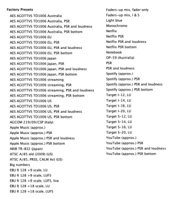 Additional Automatic adjustment functions (true peak, S-Max, M-Max)