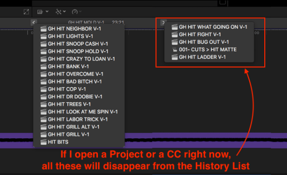 Say I have Projects 1, 2, 3 ,4 ,5 and 6 open. I work on each, open a new one, attempt to go forward to another and… half of them are now gone from the History. Why?!?! Well… here’s why, and it’s really simple.